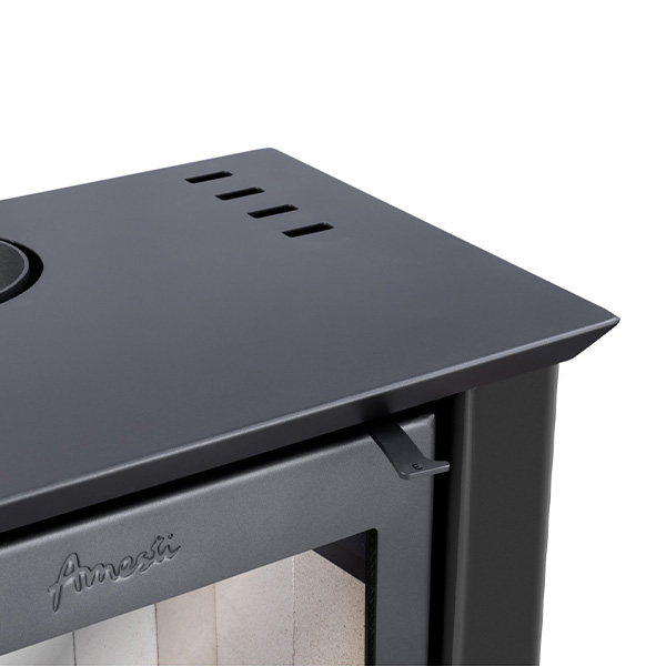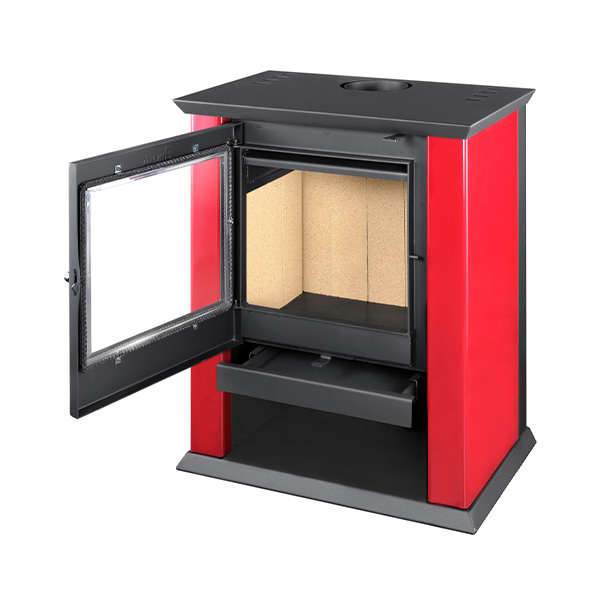 La estufa Classic 500 Rojo Italiano de Amesti destaca por su estilo sofisticado y su alta potencia de 13 kW, ideal para espacios de hasta 223 m². Equipada con revestimiento mineral bioecocalórico, templador desmontable, compartimiento para leña, vidrios autolimpiantes y manilla fría. Su diseño no solo calienta tu hogar, sino que también lo transforma en un ambiente cálido y elegante.